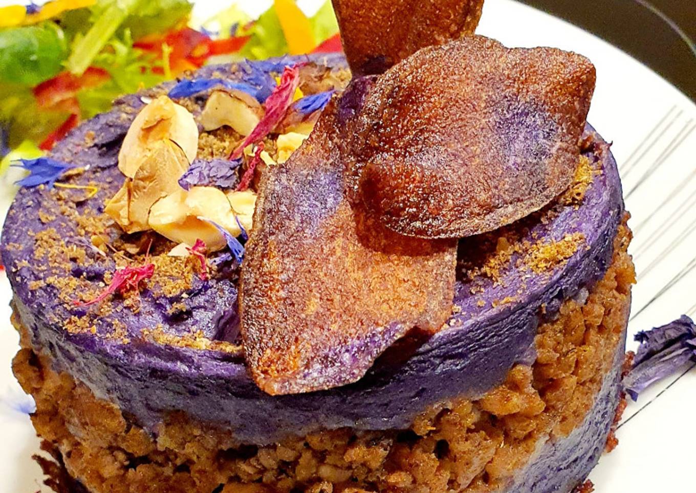 Pour ce défit je décline la Vitelotte, ici justement 2 recettes en 1 car je décline la Vitelotte en purée et en chips. Une recette originale pour changer du Parmentier classique avec ces Vitelottes. Très riche en glucides et en fibres alimentaires, la pomme de terre vitelotte est un concentré d'énergie et de vitamines. Cette pomme de terre à chair bleue ou violette est très riche en antioxydants. Plus la vitelotte est colorée, plus elle est bénéfique pour la santé. Elle possède également des propriétés anti-inflammatoires et adoucissantes. Vous suivez un régime alimentaire sans gluten ? Alors ne cherchez pas plus loin, la pomme de terre vitelotte sera votre allié gourmand idéal et constitue un aliment de choix pour vous faire plaisir. La pomme de terre vitelotte est une pomme de terre qui dispose d'une très belle qualité gustative au goût subtil de noisette. Elle n'absorbe que très peu de graisses lors de sa cuisson, ce qui en fait le légume parfait pour la travailler en chips ou en frites, en purée ou en écrasé, avec une teinte inédite. Elle est parfaite pour colorer vos assiettes et épater vos convives. #semainedugout