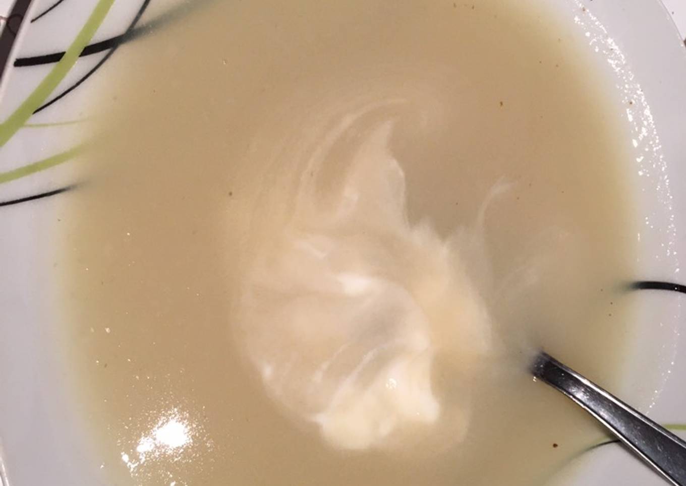 - Mixer et ajuster le sel mettre dans une assiette et ajouter une cuillère à soupe de crème fraîche épaisse et voilà bon appétit 😋
