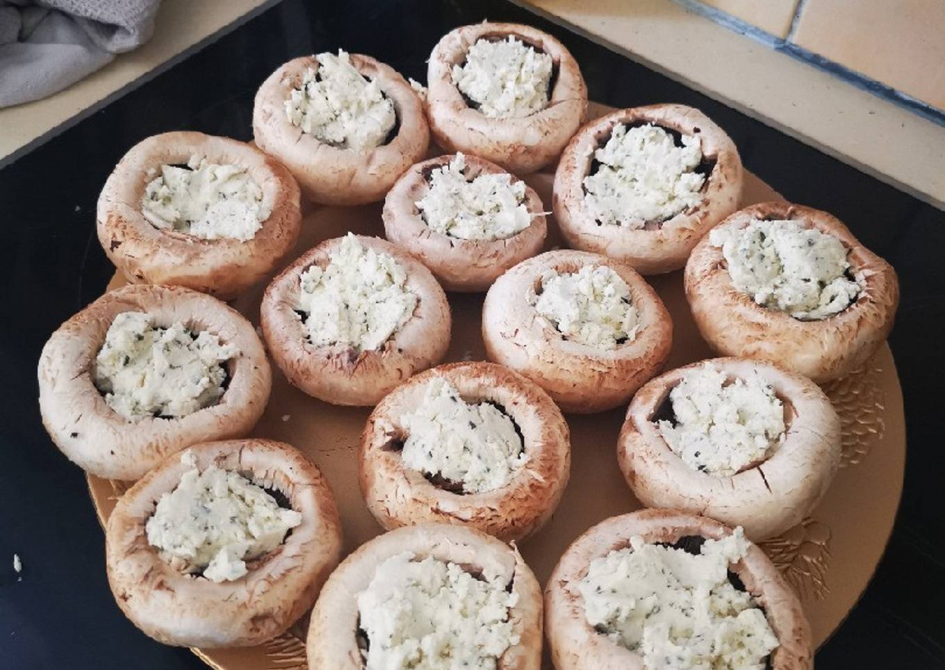 Hello everybody, hope you're having an amazing day today. Today, I'm gonna show you how to make a distinctive dish, Champignons farcis boursin. It is one of my favorites. This time, I am going to make it a little bit unique. This will be really delicious.